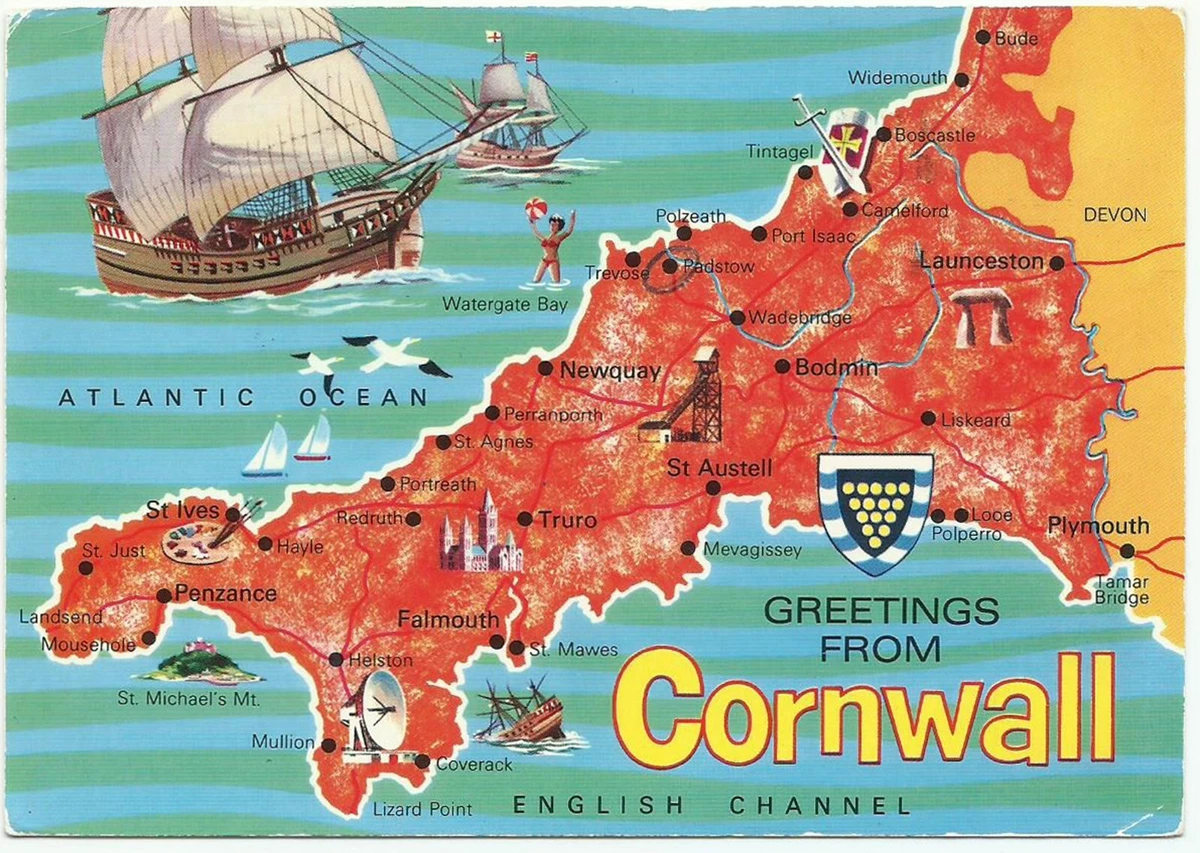 Cornwall England, Vintage Postcard, Greetings Illustrated Map | eBay